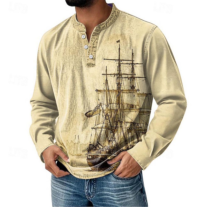 Men's Graphic Letter Henley Shirt Long Sleeve 3D Print Fashion Daily Casual Casual Holiday Going out Spring Fall Deep Purple Black Army Green Dark Blue Henley Henley T-Shirt