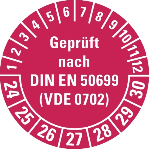 Dreifke® Prüfplakette geprüft nach DIN EN 50699(VDE 0702) 24-30, rot, Dokumentenfolie, Ø 30mm, 500/Rolle