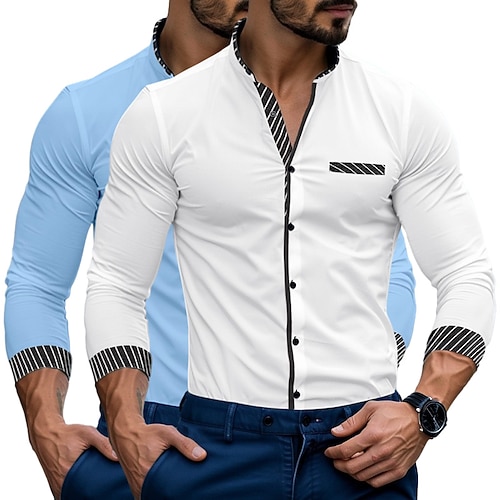 Per uomo Camicia Camicia elegante Camicia casual Camicia con colletto alla coreana Camicia con Bottoni A righe Formale Affari Bianco rosso Bianco blu BluRosso Manica Lunga Collo alla coreana