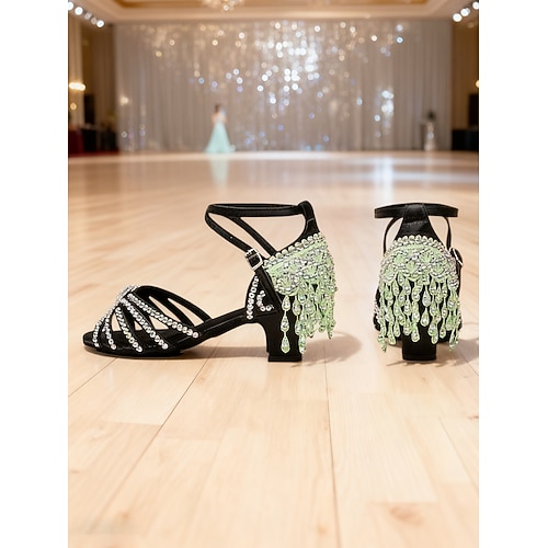 abito da ballo latino glamour con frange per donna – costume con frange di paillettes scintillanti, perfetto per cha-cha, rumba spettacolo da sala da ballo