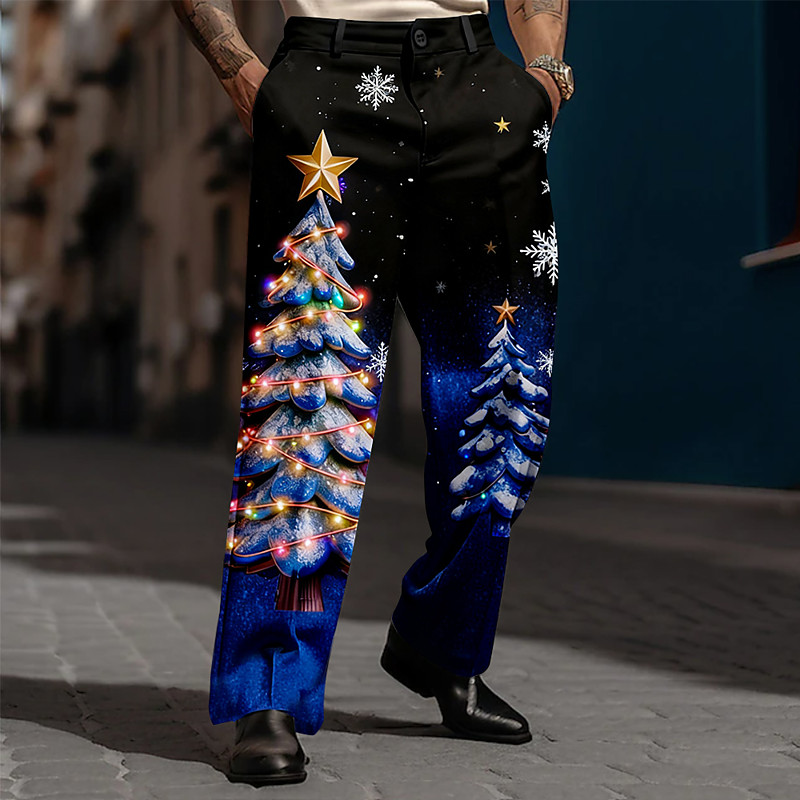 Christmas Men's Christmas Tree Christmas Light Trousers Dress Pants Suit Pants Mid Waist Fashion Casual Outdoor Holiday Relaxed Fit Flat Front Dress Pants with Side Pockets Fall Winter 3D Print Black