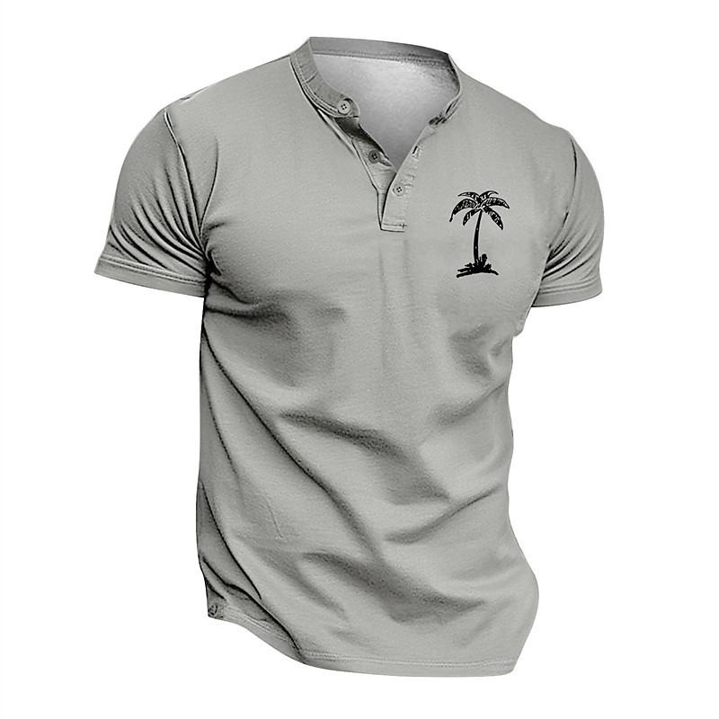 Men's T Shirt Henley Shirt Tee Short Sleeve Shirt Short Sleeve Henley Summer Spring Palm Tree Fashion Streetwear Casual Buttons Print Daily Vacation Sports Outdoor Black Light Green White Top Tee