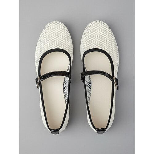 Scarpe basse Mary Jane da donna in rete beige: scarpe comode, traspiranti e leggere con cinturino regolabile e suola antiscivolo, scarpe casual da passeggio per viaggi, giardino e uso quotidiano.