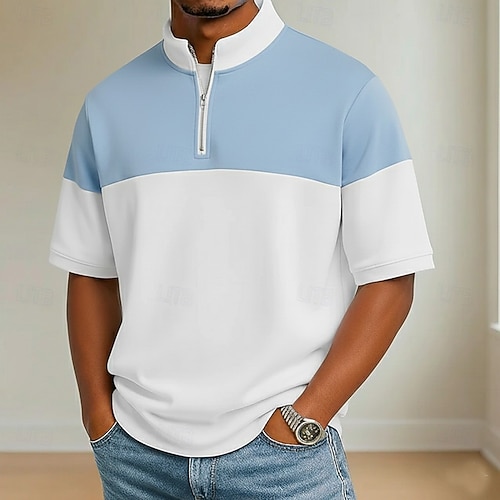 Per uomo Polo Casuale Ferie Colletto Mao Manica Corta Essenziale Moderno Plaid Blocco di colori Blocco di colore Bottoni Blu Nero Giallo Blu marino Grigio Polo