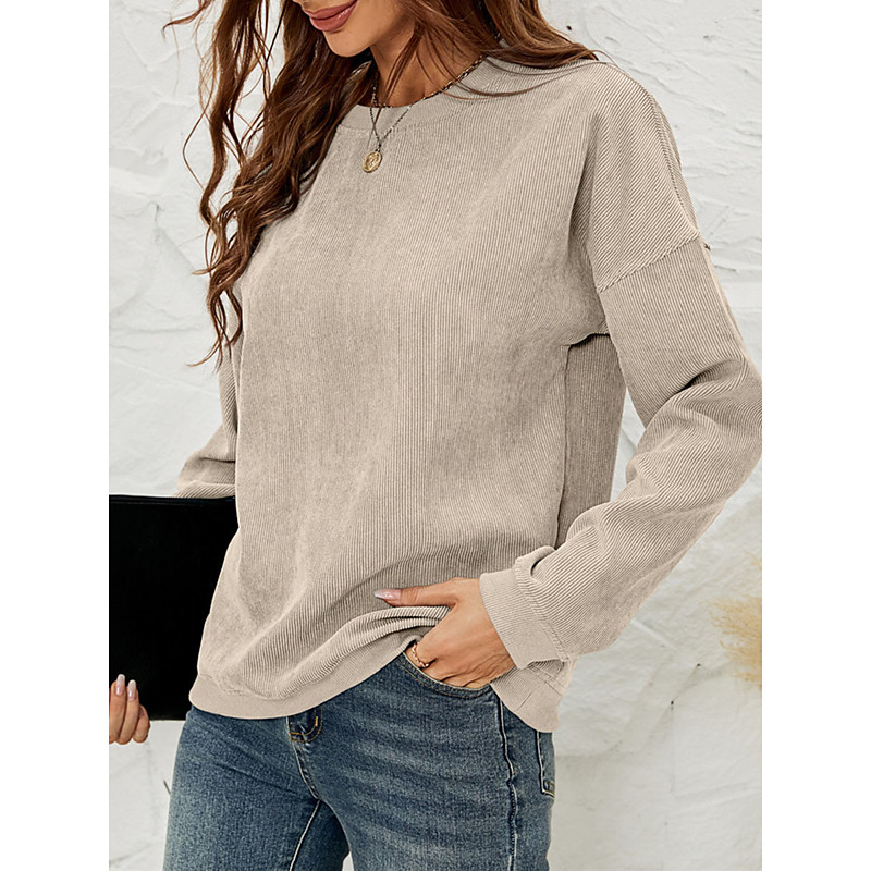 Women's Sweatshirt Casual Plain Street Dailywear Crew Neck Long Sleeve Pink Green Beige Fall Winter
