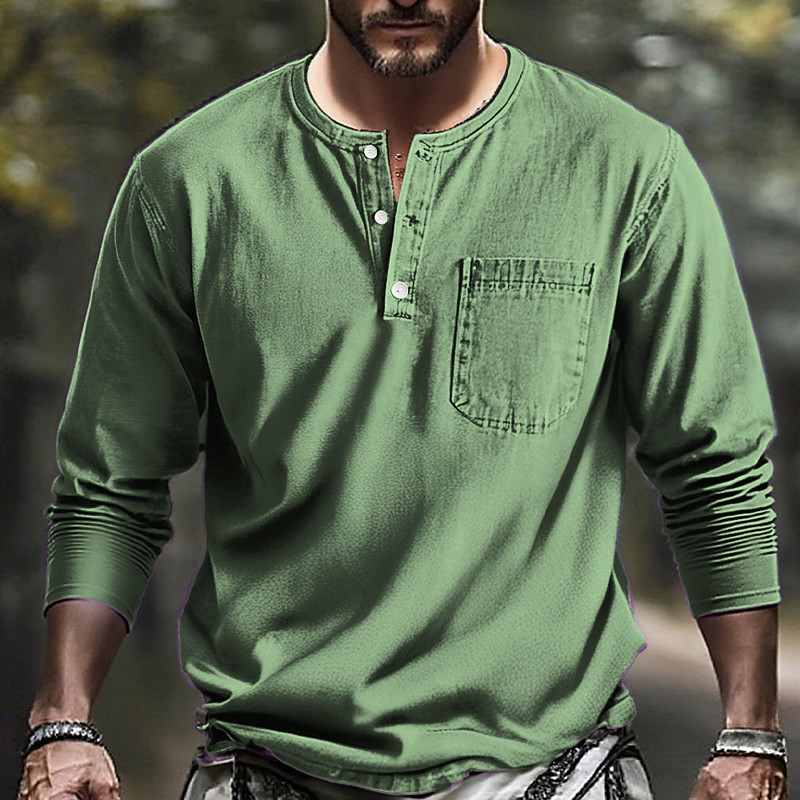 Men's Cotton Linen Shirt Plain Vacation Black White Khaki Dark Gray Long Sleeve Grandad Collar Clothing Apparel