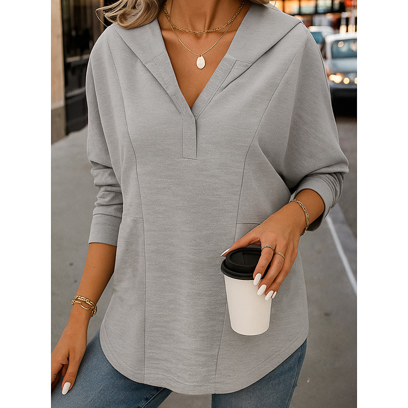 Women's Blouse Plain Casual Long Sleeve Hooded Regular Tops Daily Blue Purple Green Gray Spring Fall
