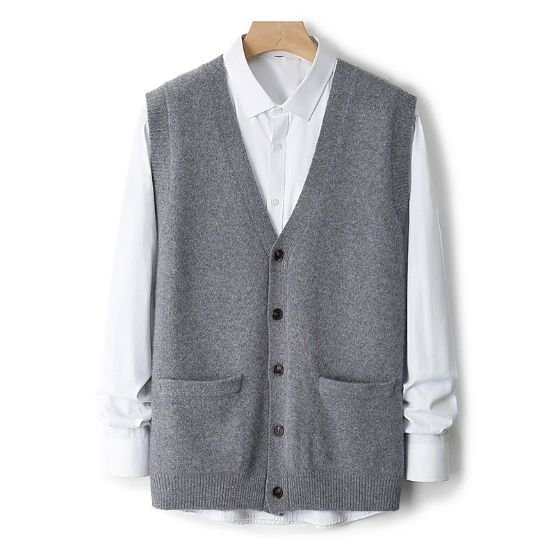 Men's Premium Pure Wool Cashmere Cardigan Sweater V Neck Classic Knit Pocket Buttons Plain Soft Warm Breathable