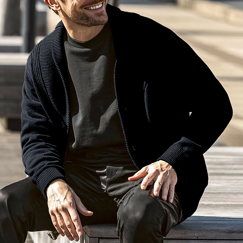 Men's Sweater Cardigan Sweater Ribbed Knit Regular Tops Knitted Plain Plain Shawl Collar Vacation Fashion Casual Daily Wear Clothing Apparel Spring Fall Black Navy Blue S M L