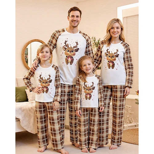 Famiglia Natale Pigiama di Natale per Famiglia Pigiama Set famiglia Grafico Plaid Cervo Casa Stampato Marrone Manica Lunga Quotidiano Abiti coordinati