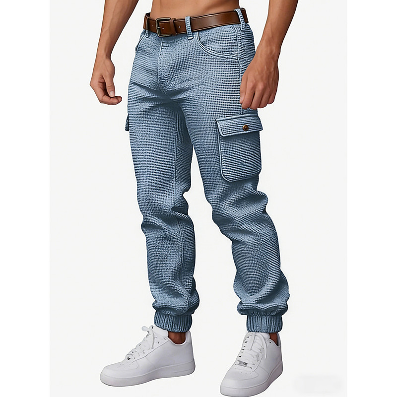 Men's Cargo Pants Joggers Trousers Waffle Pants Multi Pocket Flap Pocket Solid Color Comfort Wearable Daily Outdoor Holiday Streetwear Stylish Black Sky Blue