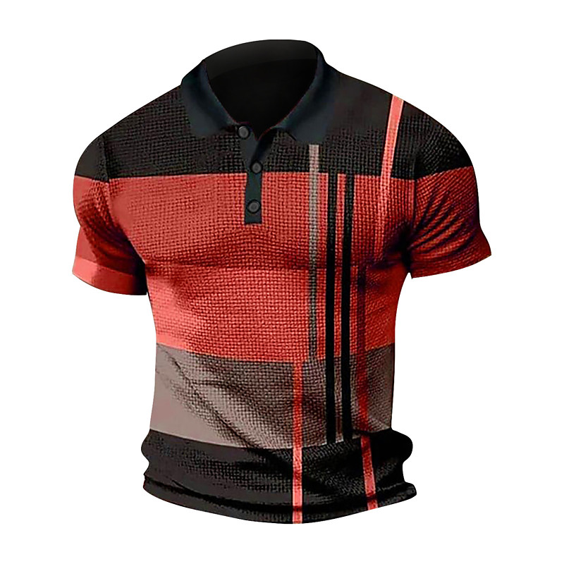 Men's Waffle Polo Shirts Textured Vacation Casual Lapel Short Sleeves Fashion Plaid / Striped / Chevron / Round Print Summer Dry-Fit Blue Yellow Pink Red Light Purple Orange Waffle Polo Shirts