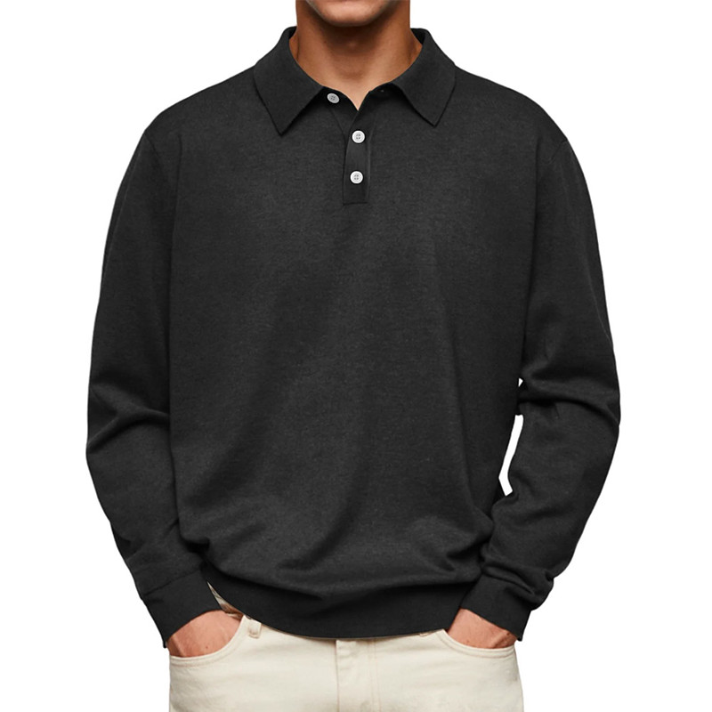 Men's Polo Casual Sports Lapel Long Sleeve Basic Modern Plain Textured Buttons Spring Fall Black Navy Blue Brown Cyan Gray Light Blue Polo