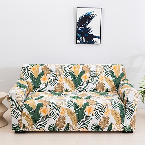 Copridivano elastico elasticizzato da 1 pezzo con stampa vegetale, copridivano orizzontale per tutte le stagioni per divano da soggiorno da 1/2/3/4 posti, copridivano protettivo morbido
