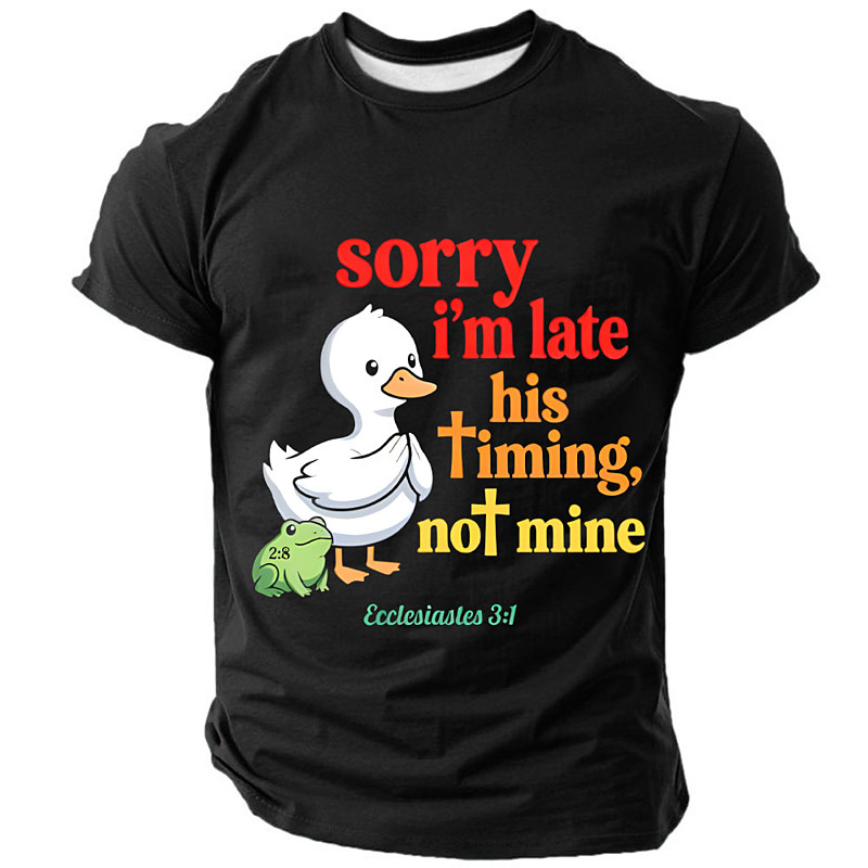 Sorry Im Late His Timing Not Mine Ecclesiastes 3 1 Funny Christian Duck Black Men Short Sleeve T Shirt Clothing Apparel S M L XL XXL XXXL