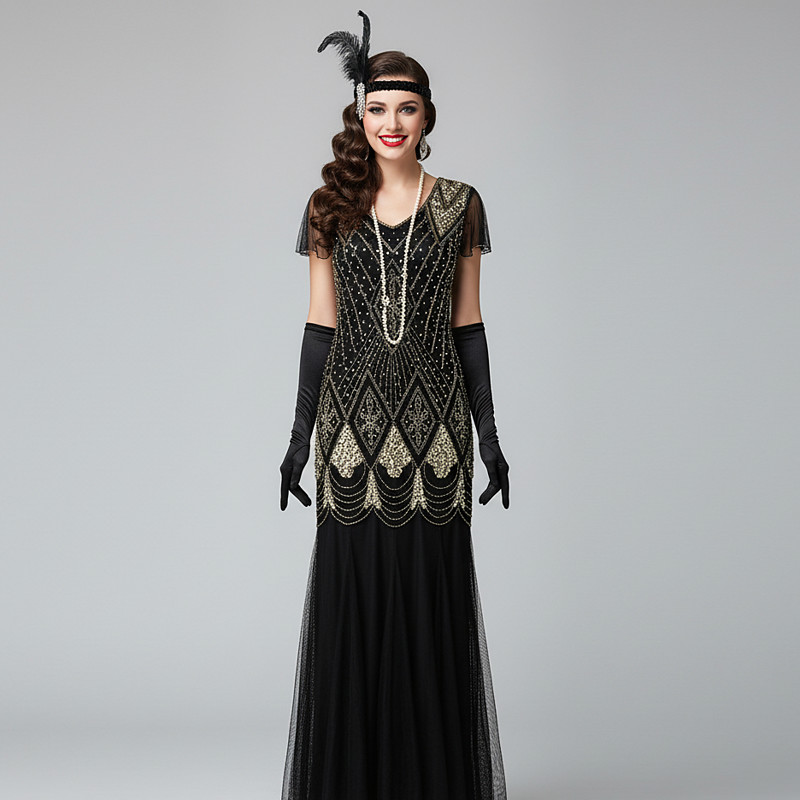 Retro Vintage Roaring 20s 1920s Maxi Ankle Length Outfits Ball Gown Evening Dress The Great Gatsby Wedding Guest Sequins Tassel Fringe Sparkling Glitter Fancy Dress Women's Christmas Carnival