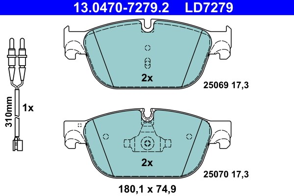 Jarrupalasarja, levyjarru, Etuakseli Ate 13.0470-7279.2 - citroën, ds, peugeot - OE 16 101 040 80, 16 118 393 80, 16 172 725 80