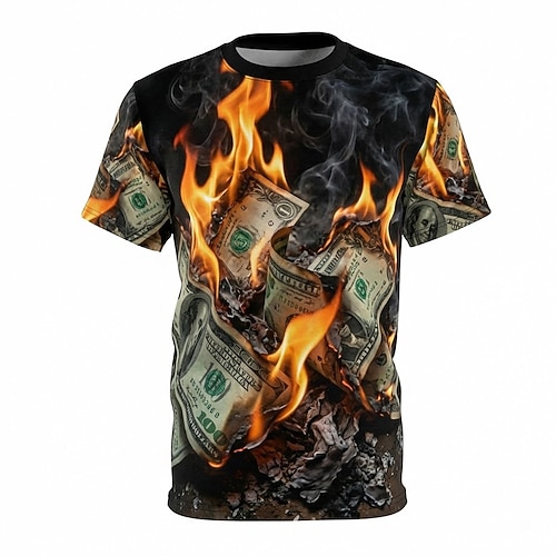 Herren-T-Shirt mit brennendem Geldmotiv, 3D-Dollar-Schein-Flammen-Grafikprint, Rundhalsausschnitt, Kurzarm, Streetwear-T-Shirt, 100% USA-Kleidung, Größen S, M, L, XL, XXL, XXXL