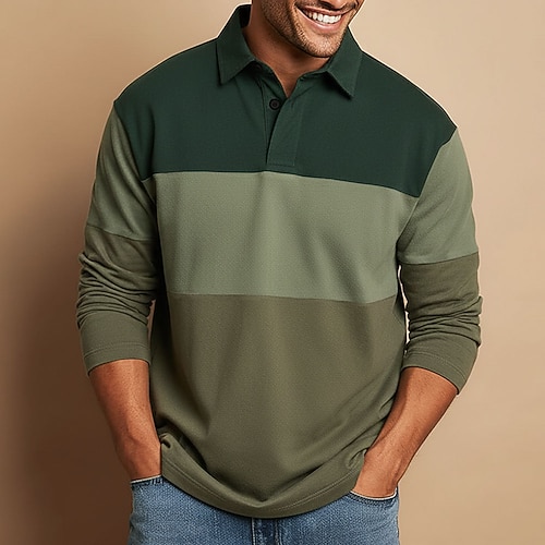 Per uomo POLO Camicia da golf Golf Informale Sport Bavero Manica lunga Di tendenza Essenziale Color Block Pied-de-poule Collage Pulsante Primavera Autunno Standard Bianco Rosso Blu marino Cachi