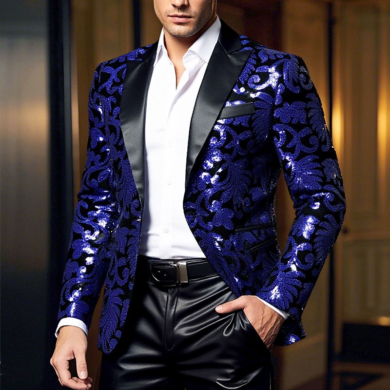 Men's Blazer Jacket Closure collar Fashion Floral Blazer Red Blue Purple Slim Fit Single Breasted One-button