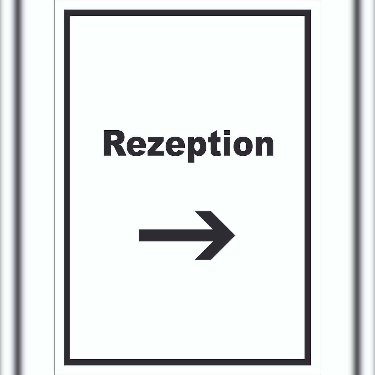 HB-Druck Rezeption Schild mit Text und Richtungspfeil rechts Anmeldung Eingang hochkant A3 Rückseite selbstklebend