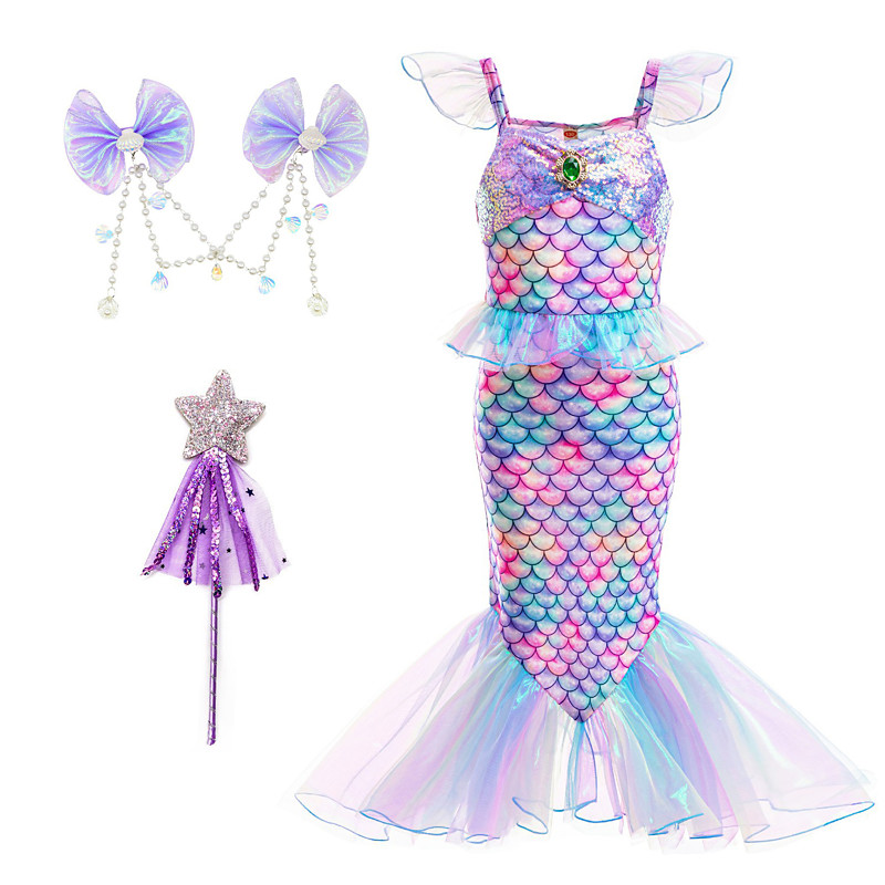 The Little Mermaid Little Mermaid Mermaid Tail Aqua Princess Dress Halloween Dress Cosplay Costume Theme Party Costume Cosplay Movie Cosplay for Girls' Kid's Carnival Masquerade
