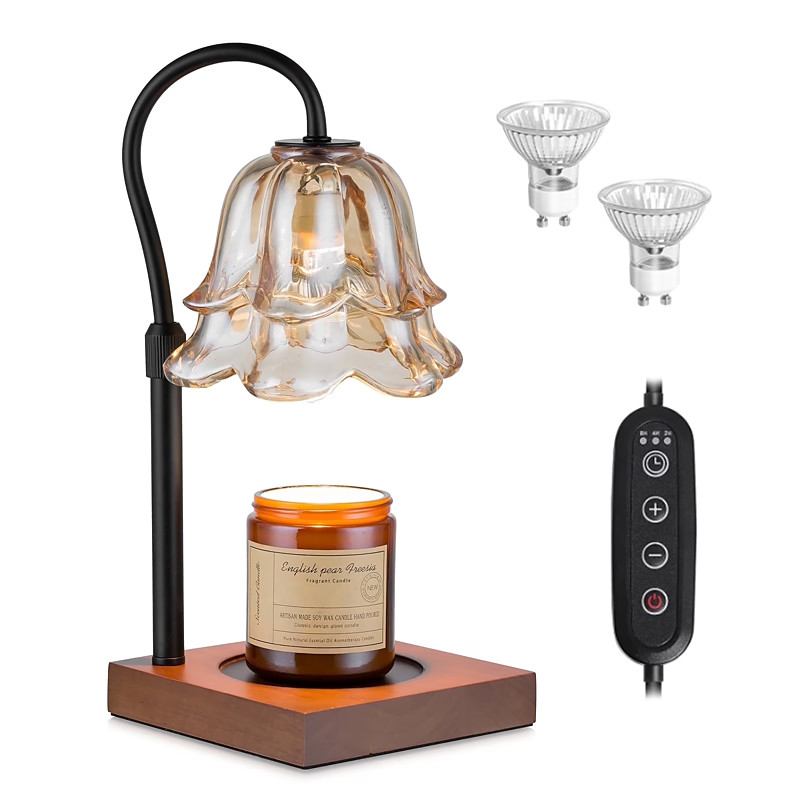 Candle Warmer Lamp with Timer Flower Candle Lamps with 2 Bulbs Height Adjustable Candle Lamp Warmer Vintage Home Bedroom Decor House Warming Black