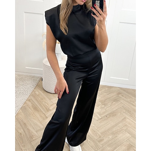Per donna Normale Tuta Elegante Tinta unica Senza maniche A V Lacci Tasche Ufficio Attività commerciale Standard Nero Vino Verde militare Estate