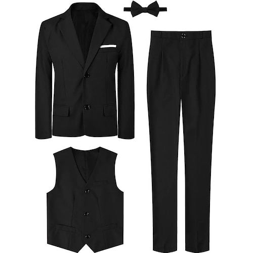 Completo da fedi per bambini, 4 pezzi, blazer gilet pantaloni cravatta ragazzo abito formale casual esterno festa moda fresco basic tinta unita tasca bottoni blu bianco vino poliestere