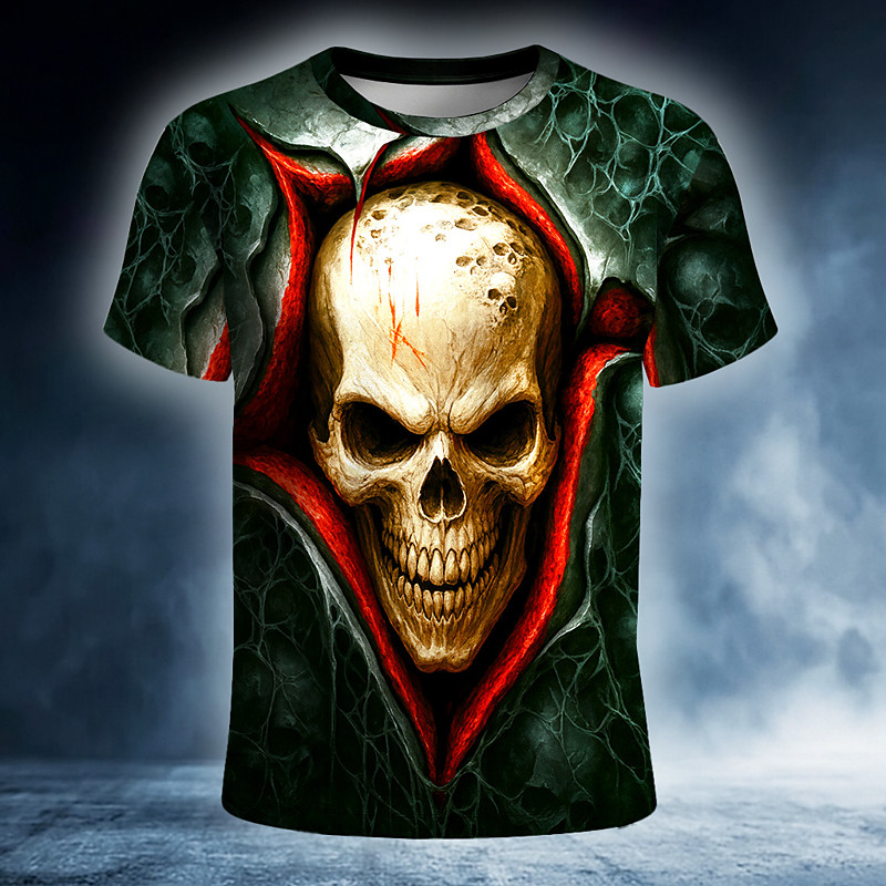 Halloween Men's Skull 3D T Shirt Short Sleeve T shirt 3D Print Crew Neck Shirt Exaggerated Designer Horror Party Street Club Green Summer Spring All Seasons Clothing Apparel S M L XL XXL XXXL