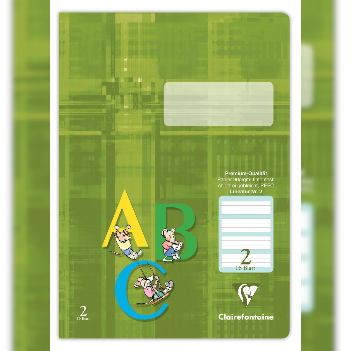 Clairefontaine 25x Schulheft Clairefontaine, DIN A4, 16 Blatt, 90g, grüne Lineatur 2 liniert für 2. Schuljahr - Khaki 331052C