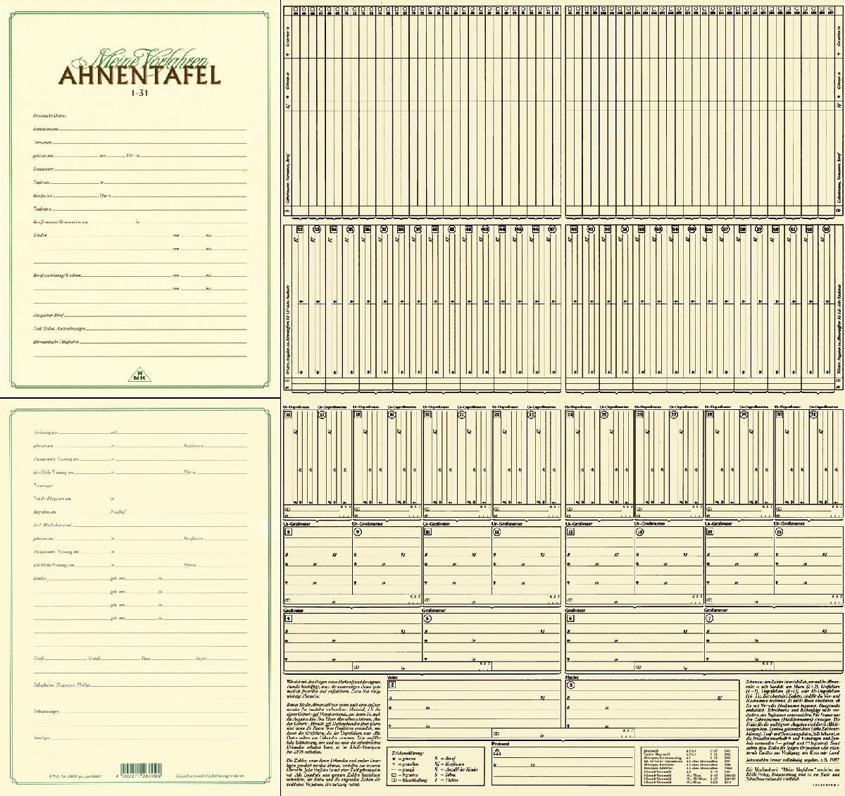 RNK Ahnentafel 1-127 für 7 Generationen auf Urkundenpapier A2 gefalzt auf A4 Packung mit 5 Stück