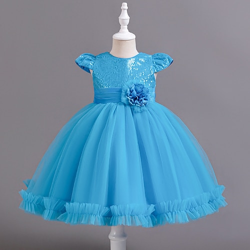 Abito da damigella d'onore bambina Ragazze Abito formale Abiti da sposa Feste Matrimonio Formale Principessa Bello Dolce Paillettes Patchwork Tinta unica Maniche Corte Girocollo Blu Rosa Dai 4 anni