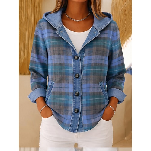 Per donna Giacca Casual Giacca con Cappuccio Caldo Confortevole Cerniera Tasca Bottoni Casual Plaid Casuale All'aperto Vacanza Uscire Regolare Con Cappuccio Vestibilità comoda Manica Lunga Capispalla