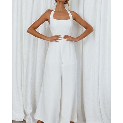 Per donna Normale Tuta Elegante Tinta unica Senza Maniche Gamba larga All'americana Senza schiena Quotidiano Vacanza Vestibilità comoda Bianco Verde chiaro Rosa Estate