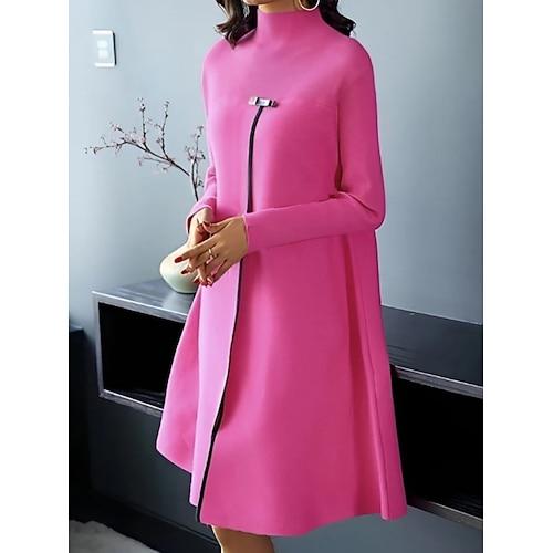 Per donna Mini Abito Abito a Tubino Abito a trapezio Casual Quotidiano Vestibilità comoda Semplice Manica Lunga Collo Alto Nero Fucsia Primavera Autunno Inverno