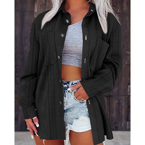 Per donna Cardigan Casual Morbido Tinta unica Treccia Colletto a Camicia Tasca Lavorato a maglia Manica Lunga Top lunghi Maglia Quotidiano Uscire Weekend Nero Rosso Autunno