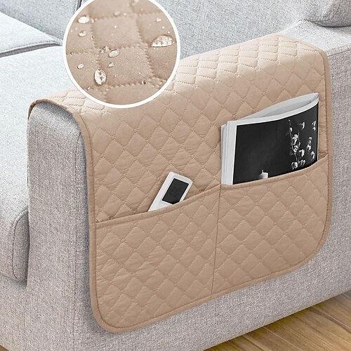 Set di 1 copribraccioli grigio scuro impermeabili per divano con 2 ampie tasche laterali per telecomando TV, antiscivolo, resistenti, lavabili, per poltrona reclinabile, ideali per il soggiorno.