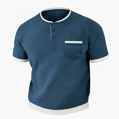 Da uomo Maglietta Waffle Maglietta Maglia Henley Camicia a Maniche Corte Manica Corta Henley Estate Primavera Blocco di colori Moda Streetwear Casual Tasche Bottoni Quotidiano Sport Outdoor Sport