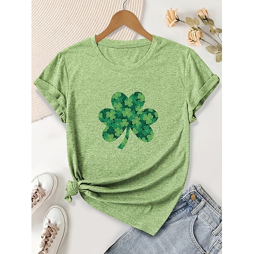 T-shirt grafica con trifoglio a maniche corte per il giorno di San Patrizio