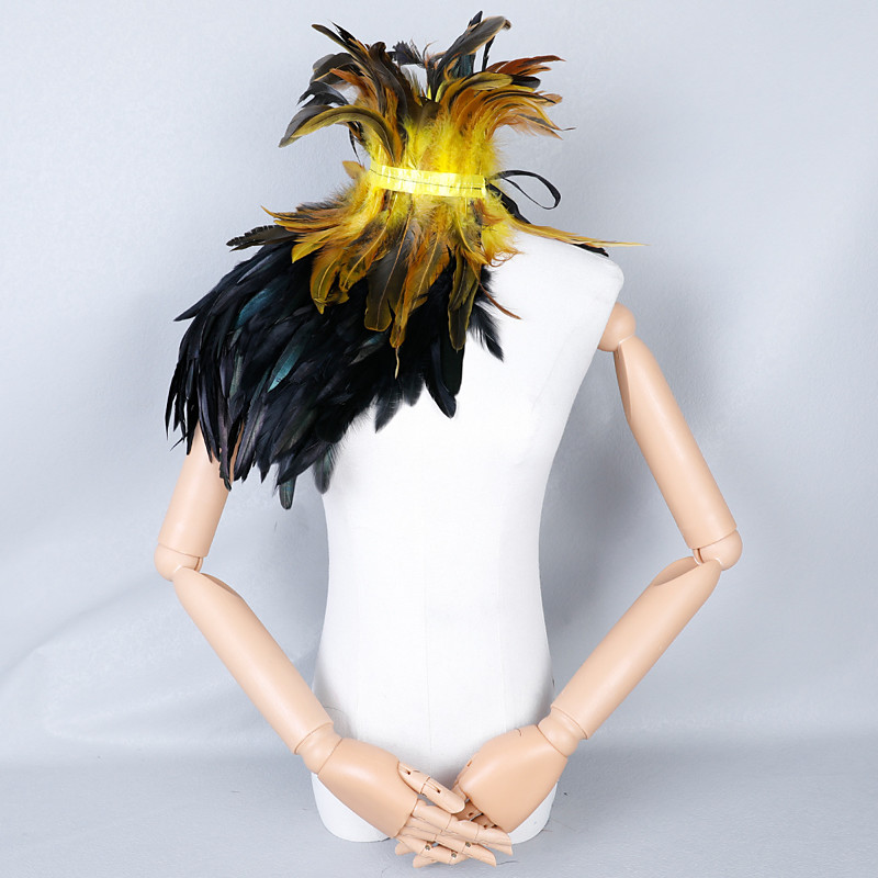 Women's White Feather Cape Shawl with High Collar, Gothic Angel Costume Accessories, Snow Queen Ice Witch Cosplay Shrug