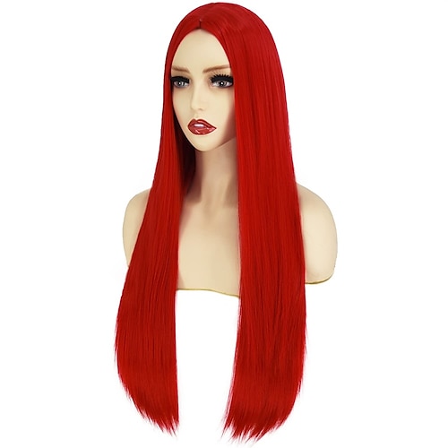 Parrucca Cosplay Parrucca Sintetica Dritta Parrucca a Parte Centrale per Donne Parrucche con Linea Naturale Capelli Neri Lunghi Marrone Chiaro Lago Blu Verde Brillante Viola Giallo 28 Pollici