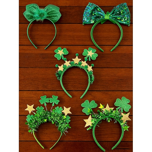 set di fasce per capelli da donna per il giorno di San Patrizio (confezione da 5) - trifoglio verde glitterato cerchietti per capelli con fiocco, accessori per costumi festivi irlandesi per sfilate e