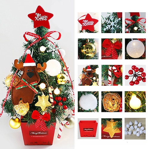 mini ornamento dell'albero di natale fai da te 50-60 cm decorazione dell'albero di natale del desktop ornamento dell'albero di natale con luci abito rosso oro decorare luci di natale