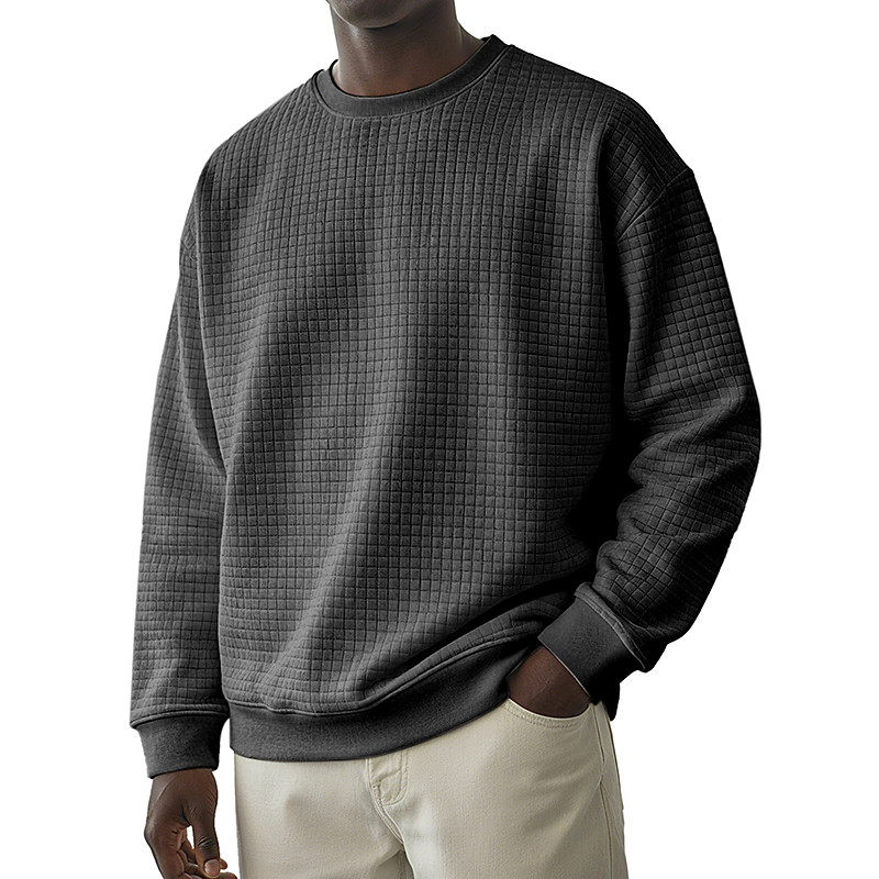 Men's Sweatshirt Waffle Sweatshirt Pullover Hoodie Sweatshirt Pullover Black White Army Green Khaki Gray Crew Neck Plain Textured Sports Outdoor Casual Daily Streetwear Cool Sportswear Spring