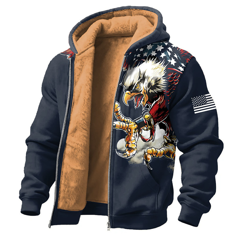 US America 250 Year Anniversary Men's American US Flag Eagle Fleece Hoodie Sweatshirt Fashion Daily Simple Casual Long Sleeve Crew Neck Outdoor Climbing Black Dark Green Dark Blue Zip Up Fall