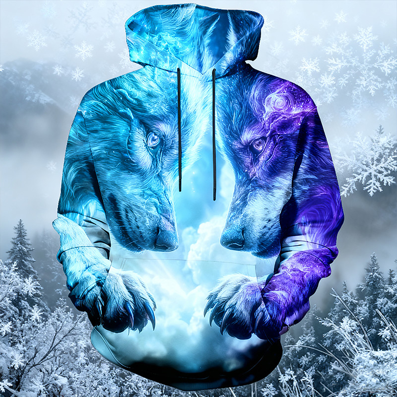 Men's Wolf Hoodie Sweatshirt 3D Fantasy Crew Neck Streetwear Club Gift Blue Purple Drawstring Fall Winter Designer S M L XL XXL XXXL