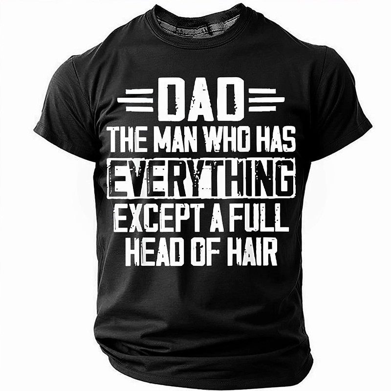 Mens Funny Dad T-Shirt - The Man Who Has Everything Except A Full Head Of Hair Graphic Short Sleeve Tee, Family Gift
