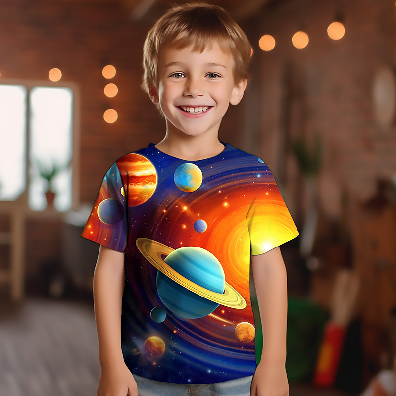 Boys 3D Graphic Galaxy Space T shirt Tee Short Sleeve 3D Print Summer Spring Active Sports Fashion Kids 3-12 Years Outdoor Casual Daily Regular Fit