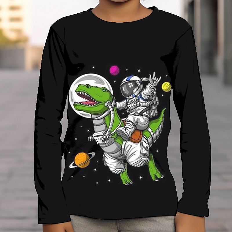 Boys 3D Graphic Galaxy Dinosaur T shirt Tee Long Sleeve 3D Print Summer Spring Fall Sports Fashion Streetwear Kids 3-12 Years Outdoor Casual Daily Regular Fit